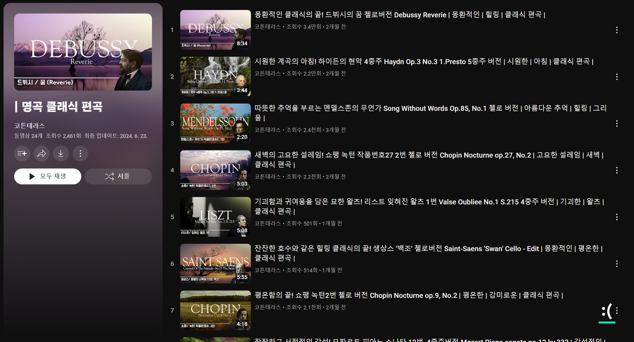 그래서 그 이후로 클래식 모음집 영상을 꾸준히 제작하게 되었고 반응이 꽤 좋았습니다.