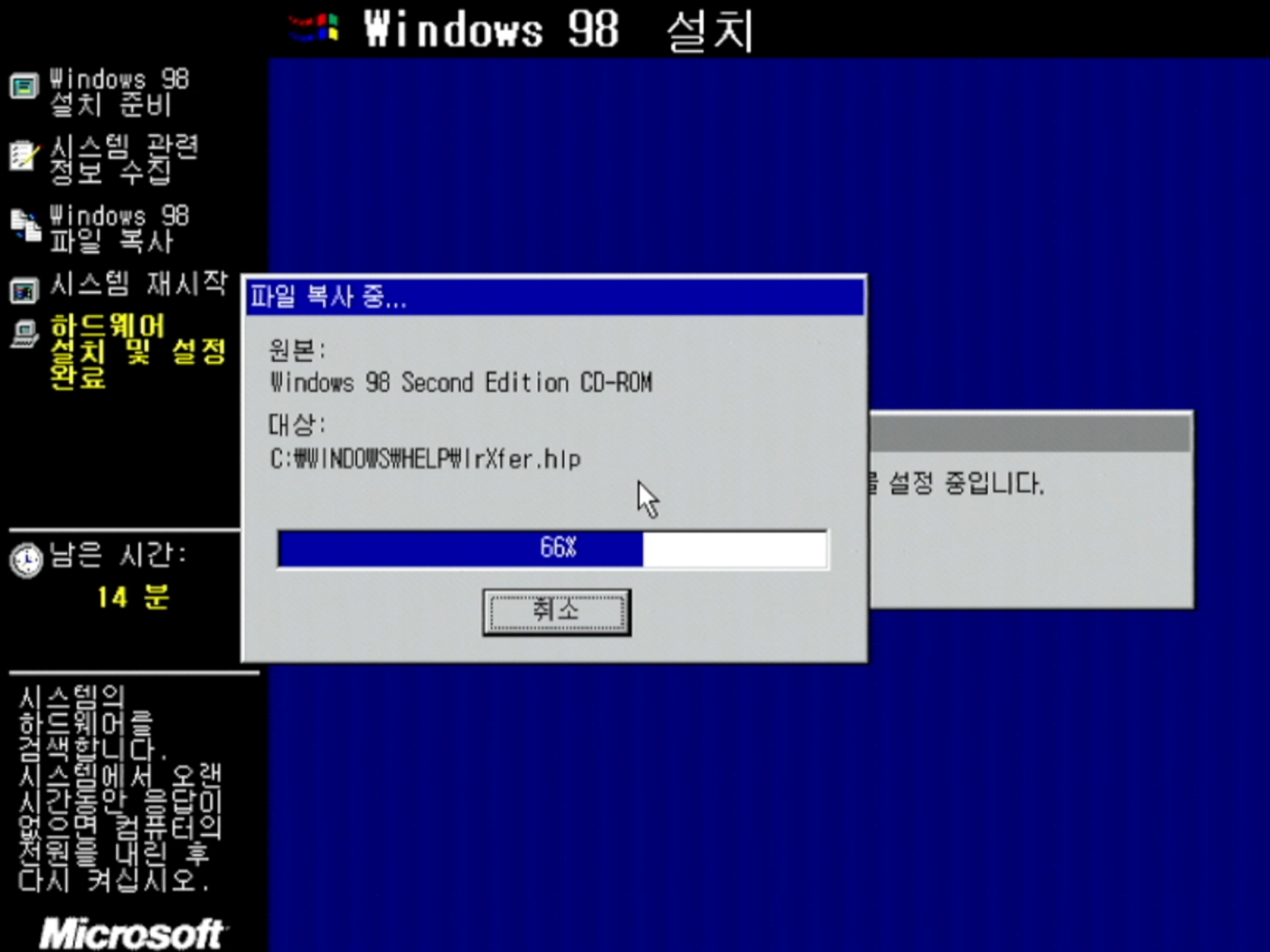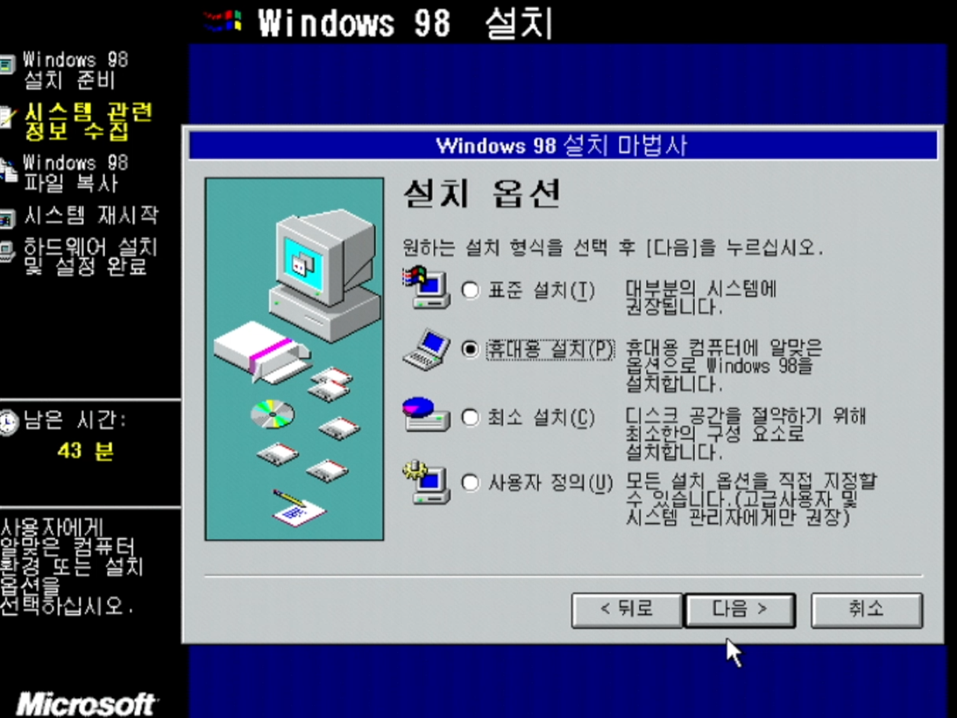 메인 드라이브에서 윈도우 98 SE 설치
