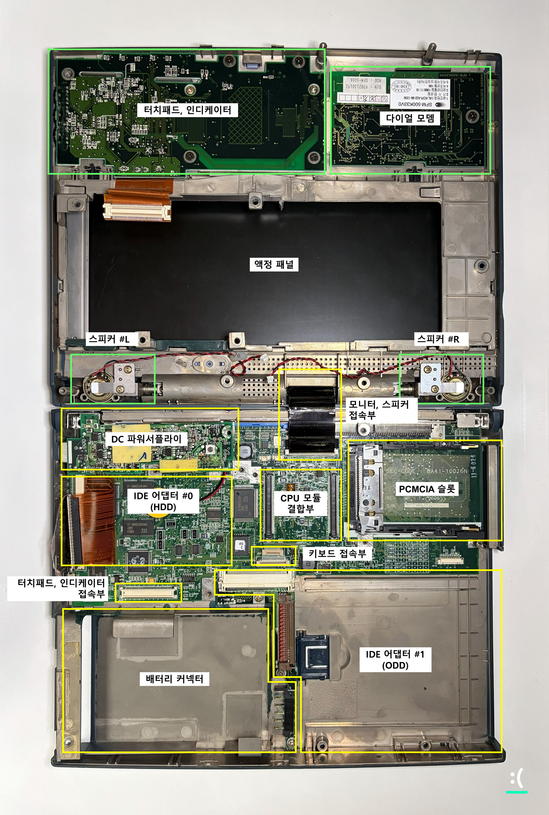 ODD 연결에 쓰이는 1번 IDE 어댑터가 배터리 연결부와 매우 가까워 누액으로 인한 영향을 크게 받을 수밖에 없는 구조인데, 누액이 이곳에 오염을 가하게 되면 ODD에 전원은 공급되나 바이오스에서 인식이 되지 않는 등의 기능 고장이 높은 확률로 발생한다.