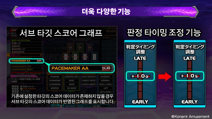 KONAMI의 아케이드 리듬 게임 'beatmania IIDX'의 27번째 버전인 'HEROIC VERSE'의 신기능을 소개하기 위해 공식 트위터 계정으로 공개된 슬라이드 이미지들을 한국어로 번역 및 재편집해 보았다.