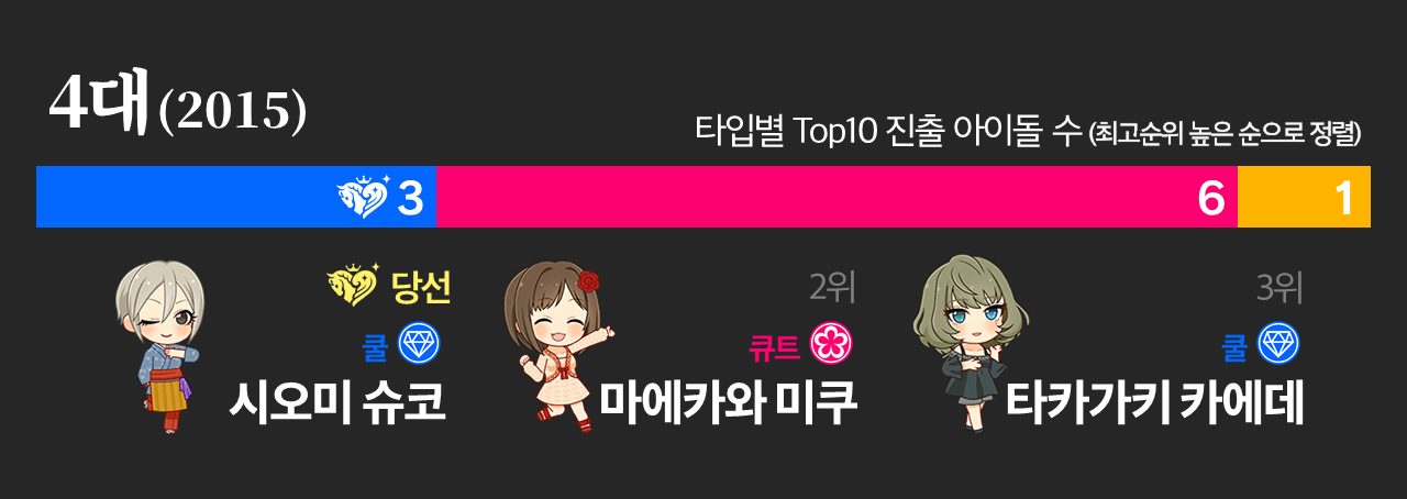 - 득표순위 10위권 내 타입별(쿨·큐트·패션) 아이돌 수