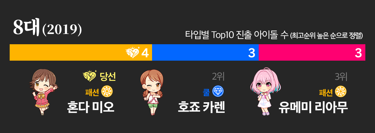 - 득표순위 10위권 내 타입별(쿨·큐트·패션) 아이돌 수