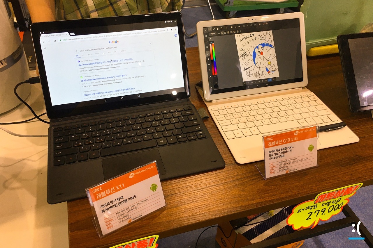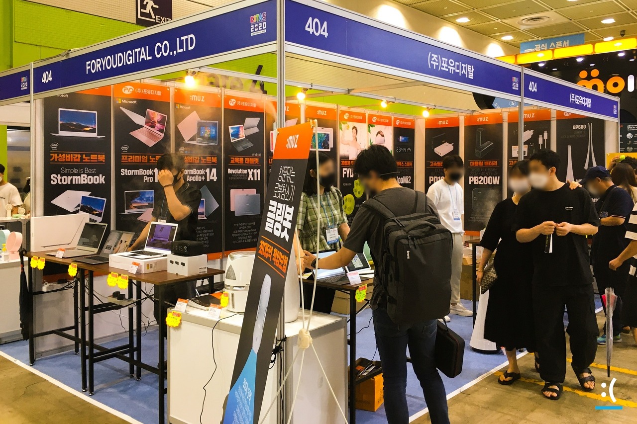 다음으로는 ‘아이뮤즈‘ 브랜드로 익숙한 포유디지탈 부스에 가 봤다. 역시나 부스에는 아이뮤즈 브랜드가 붙은 ‘레볼루션 X11‘, ‘레볼루션 G10‘ 등의 태블릿들과 ‘스톰북‘ 시리즈의 노트북들이 전시되어 있었다.