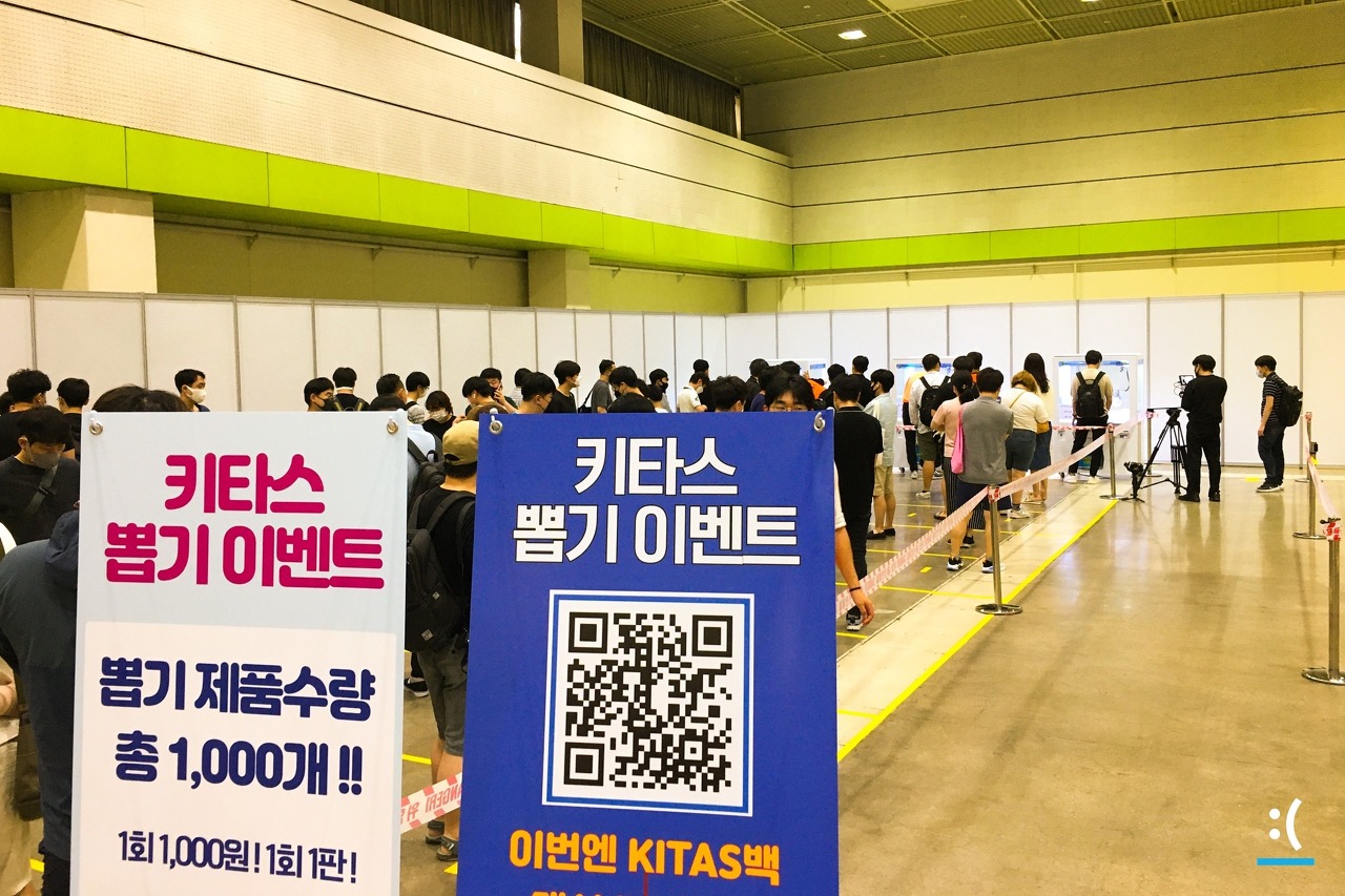 입장 뒤에 가장 먼저 향했던 곳은 키타스 뽑기 이벤트가 열리고 있는 곳이었다. 오락실에서 흔히 볼 수 있는 인형 뽑기 기계를 조작하여 상품 교환권이 들어있는 캡슐을 뽑아갈 수 있는 이벤트였다.