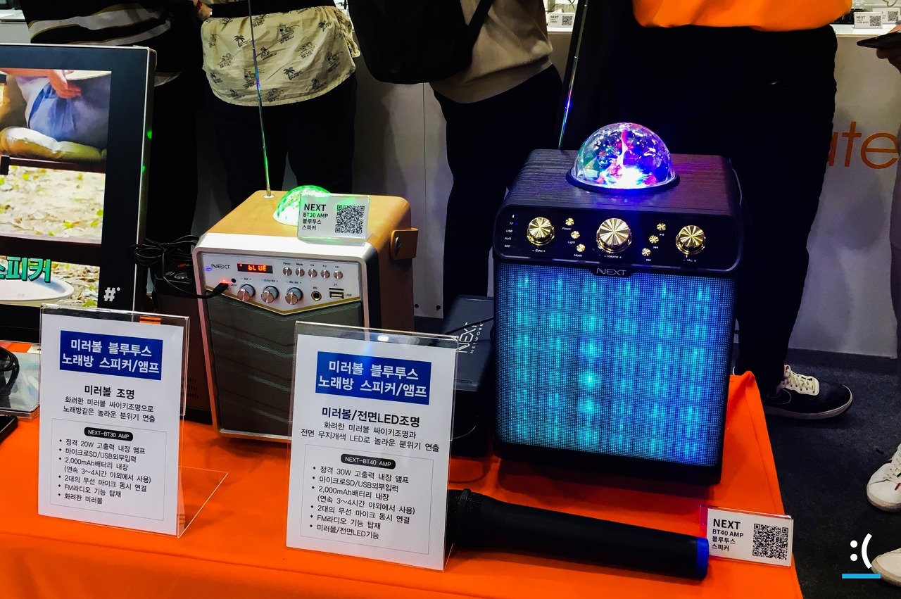금영엔터테인먼트 부스에서는 가정용 노래반주기인 ‘쥬크5‘와 블루투스 마이크 ‘뮤즐2‘를 전시하고 있었고, 이지넷유비쿼터스 부스에서는 화려한 미러볼과 LED로 장식한 블루투스 노래방 스피커들(‘NEXT-BT30 AMP‘, ‘NEXT-BT40 AMP‘)이 눈에 띄었다.