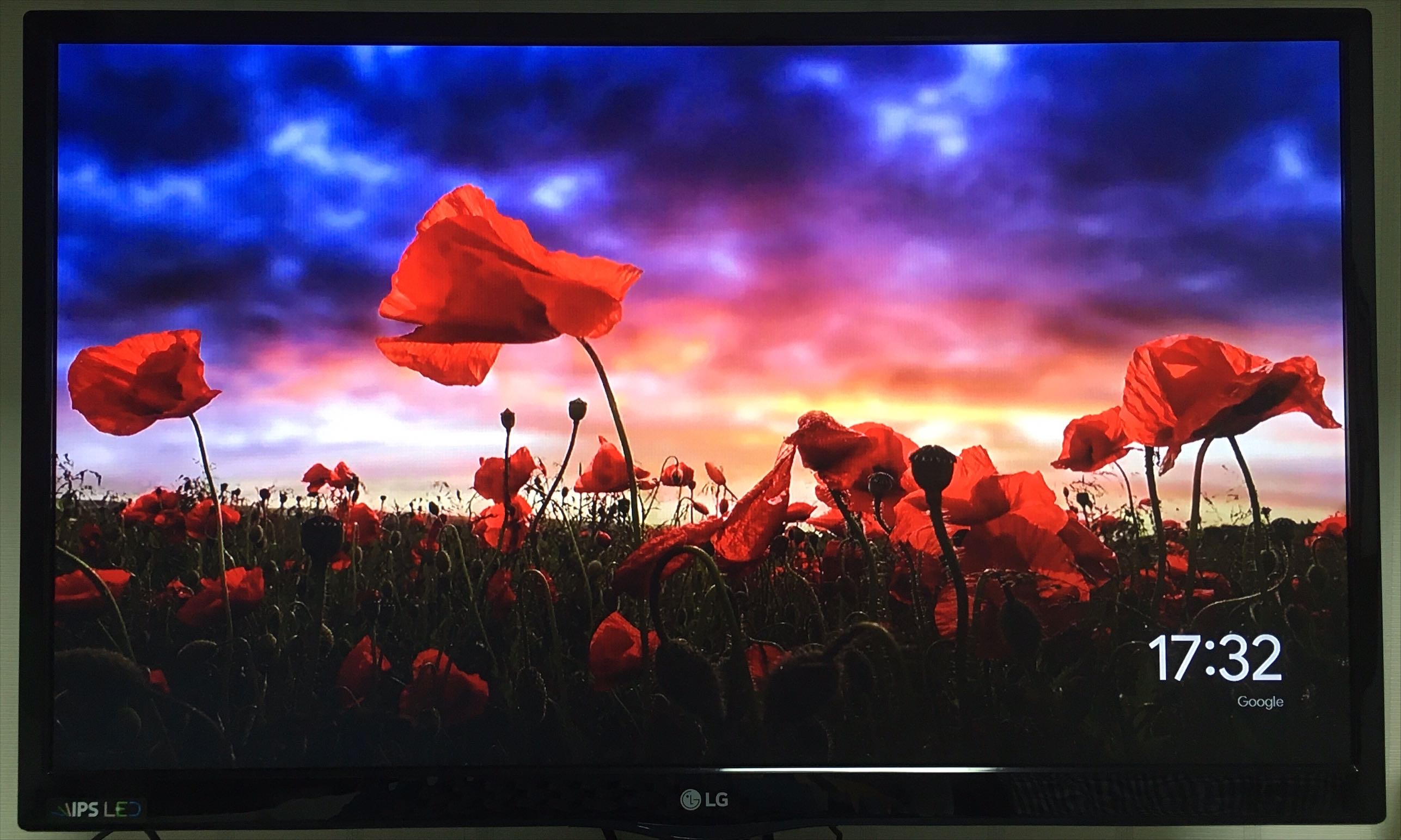 업데이트가 모두 완료되면 앞으로 이 크롬캐스트를 쓰면서 많이 보게 될 대기 화면이 나온다. 이 화면이 보인다면 사용 환경 구성이 모두 완료된 것이다.