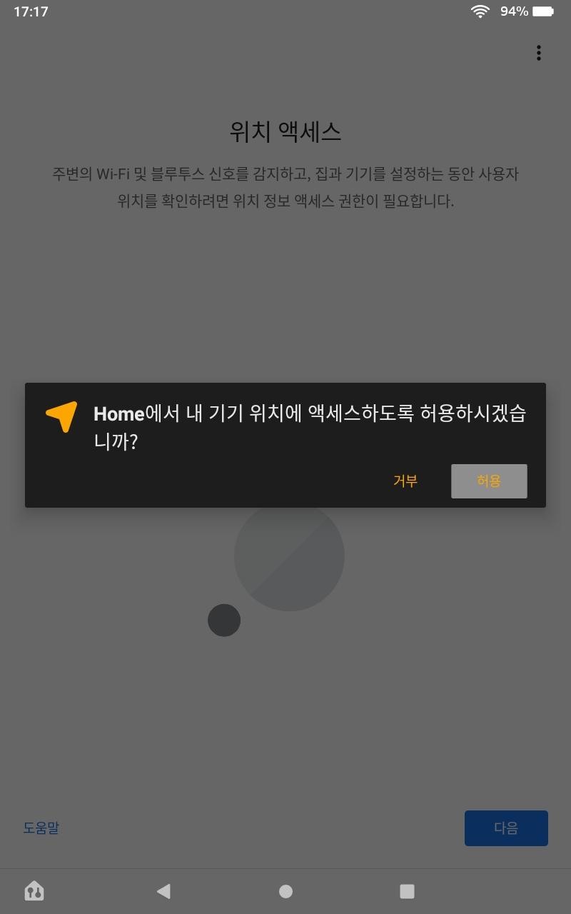 'Google Home' 앱을 실행하고 자신이 주로 쓰는 Google 계정에 로그인한다. 이때 위치 액세스와 블루투스 사용을 허용하겠냐고 물어보는데 이것도 허용해 준다.