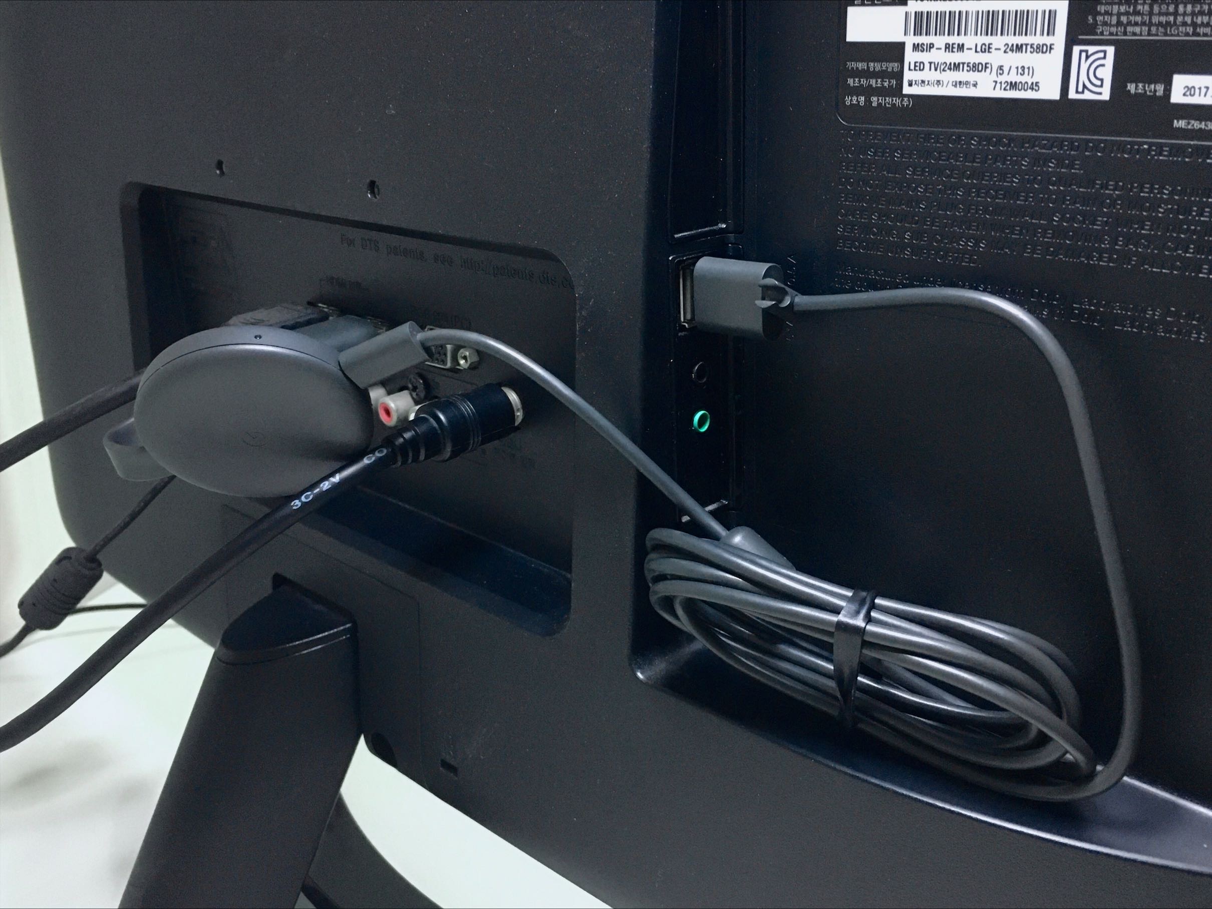 본체에 전원 케이블을 연결하면 된다. 나의 경우는 모니터에 내장된 USB 단자를 통해 전원을 공급받는 방식을 택해서, 모니터의 전원이 꺼지면 자연스럽게 크롬캐스트의 전원도 따라서 꺼지도록 구성했다.