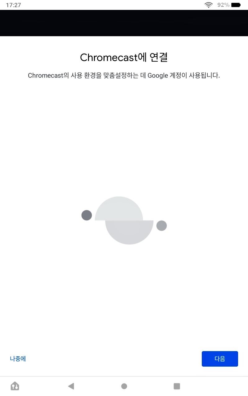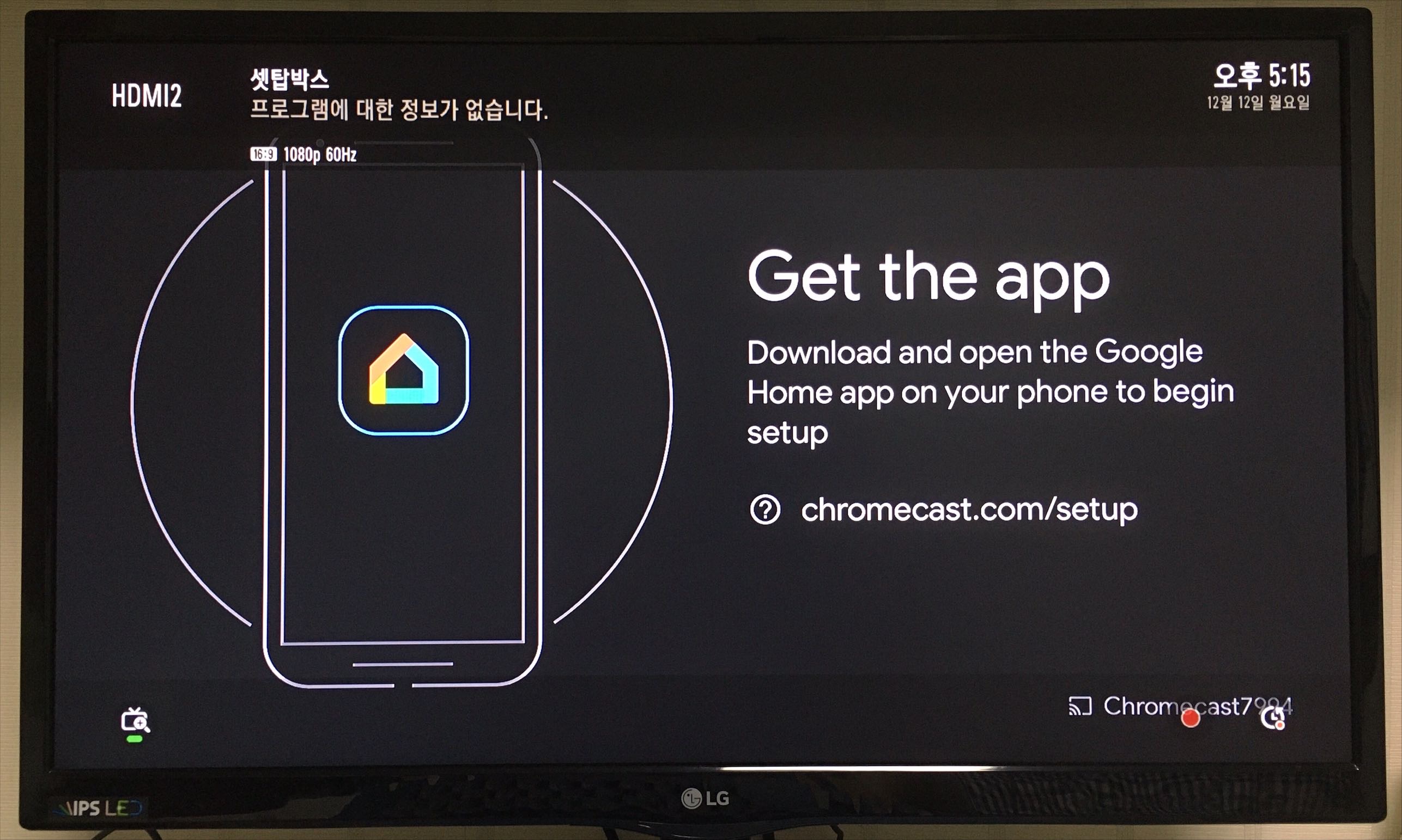 크롬캐스트 설치를 완료하고 HDMI 입력에 진입하면 처음으로 이렇게 생긴 화면이 반겨준다.