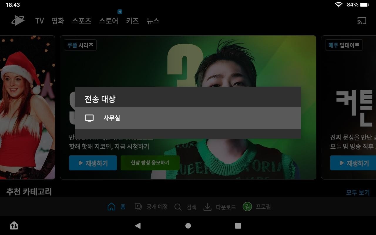 그러면 해당 디바이스와 크롬캐스트가 페어링되어 그 이후부터는 터치 한 번만으로 크롬캐스트에 원격으로 명령을 보내어 영상을 재생시킬 수 있다.
