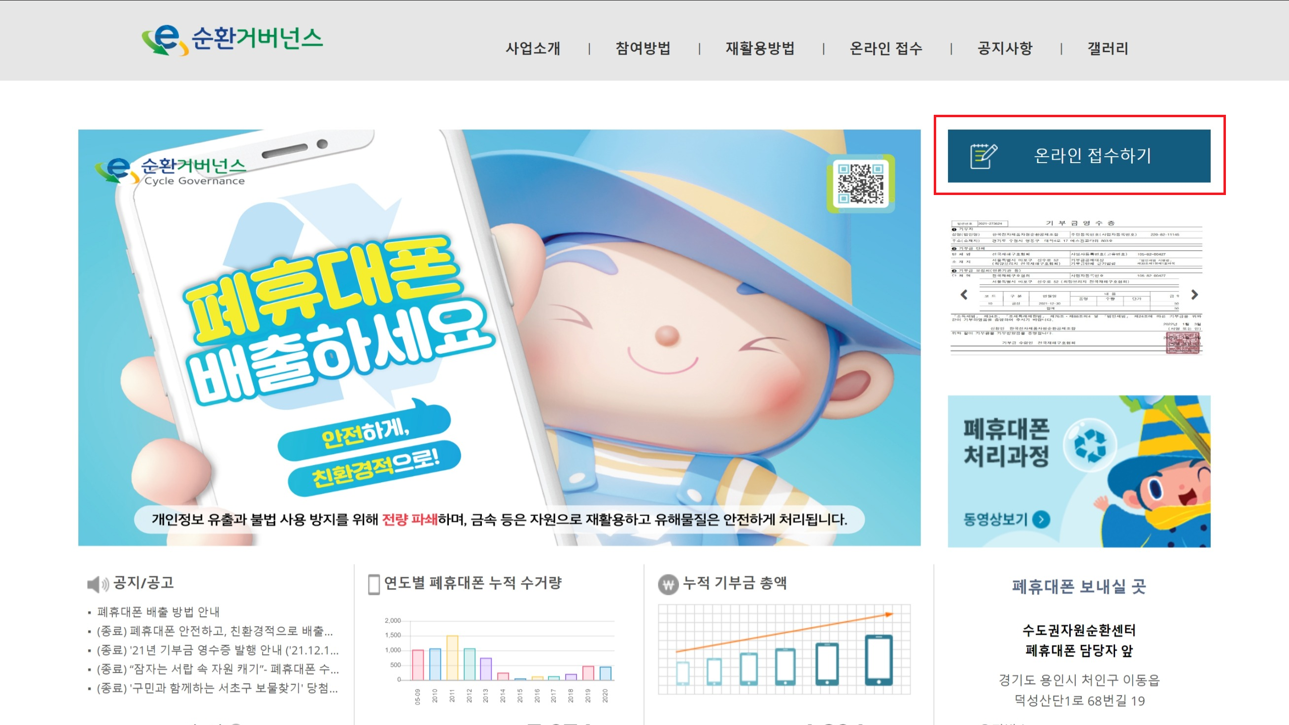 우선 제일 먼저 해야 할 작업은 'E-순환거버넌스' 웹사이트(https://나눔폰.kr)에 접속해 온라인 접수를 하는 것이다.
