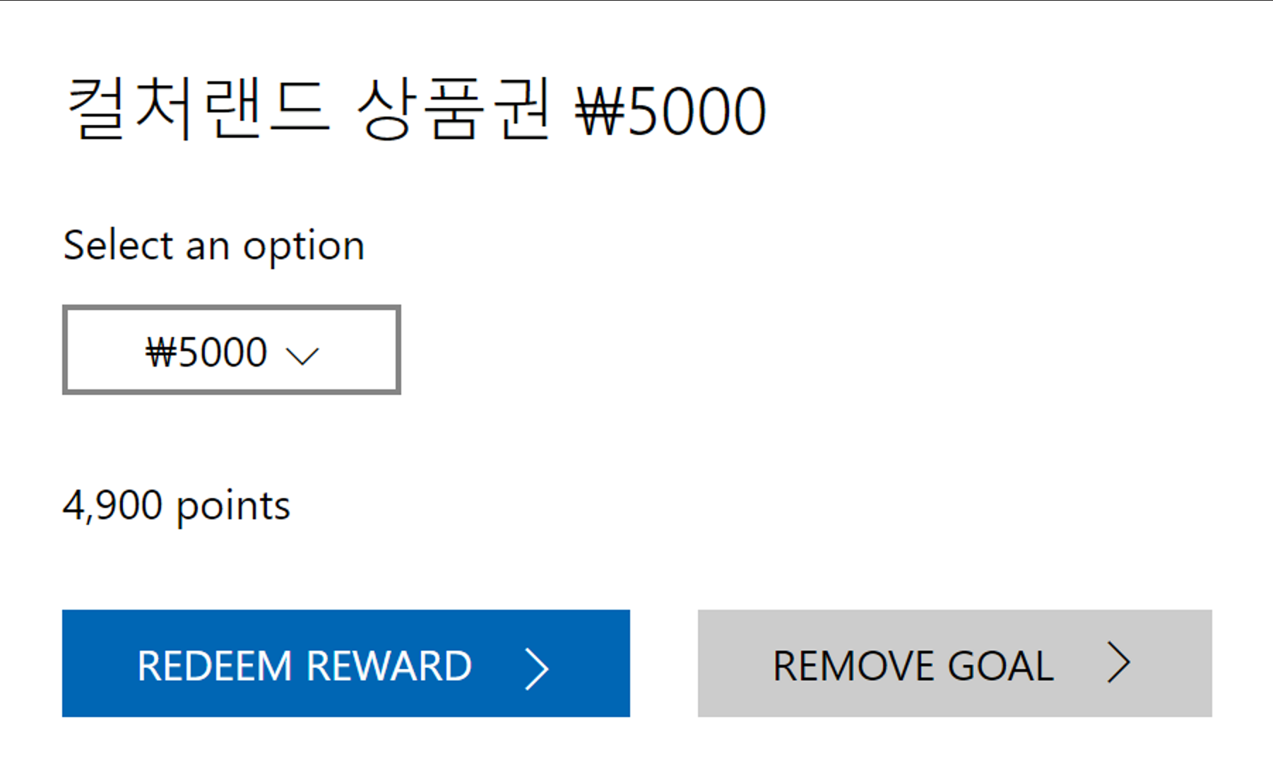 충분한 양의 포인트를 모았다면 마이크로소프트 리워드 웹 사이트의 'Redeem' 메뉴(rewards.bing.com/redeem)에서 원하는 상품과 포인트를 교환할 수 있다. 2023년 1월 기준으로 한국 서비스에서 포인트를 통해 정식으로 교환 가능 품목으로 제시된 것들은 다음과 같다.