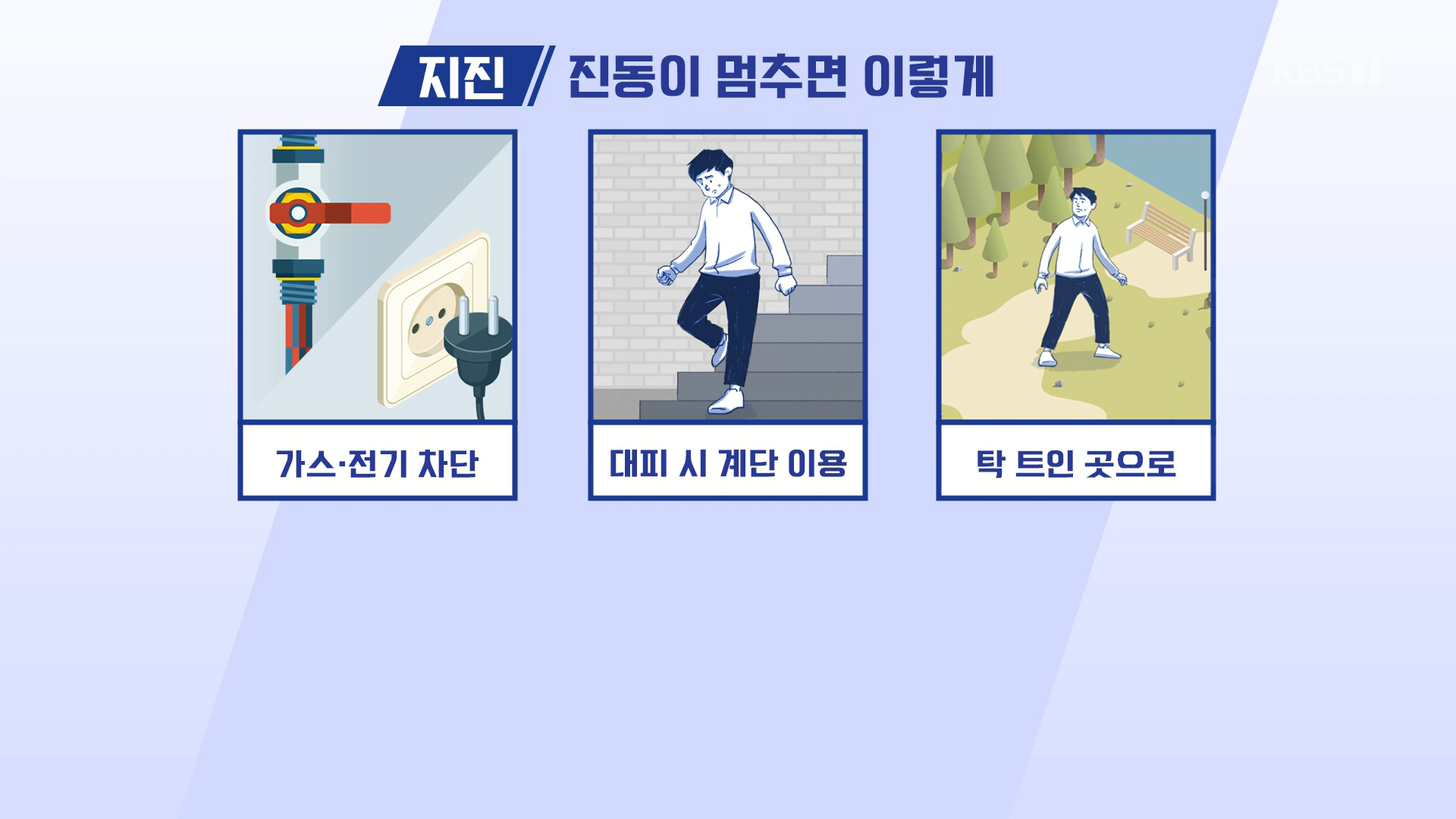 특히 이런 변화의 흐름에 제일 민감하게 대응하는 방송국은 아무래도 '재난방송 주관방송사'로 지정되어 있기까지 한 KBS 한국방송이 되겠다. 실제로도 지진 발생 시 작동하는 각 방송국들의 지진 속보 체계를 보면 유독 KBS의 것이 제일 고도화되어 있다는 점을 느낄 수 있다. 이 글에서는 KBS 1TV에서 지진 속보 체계가 작동하는 과정을 간단히 소개하며 우리나라 방송계의 지진 보도 매뉴얼이 어디까지 발전했나 살펴본다.