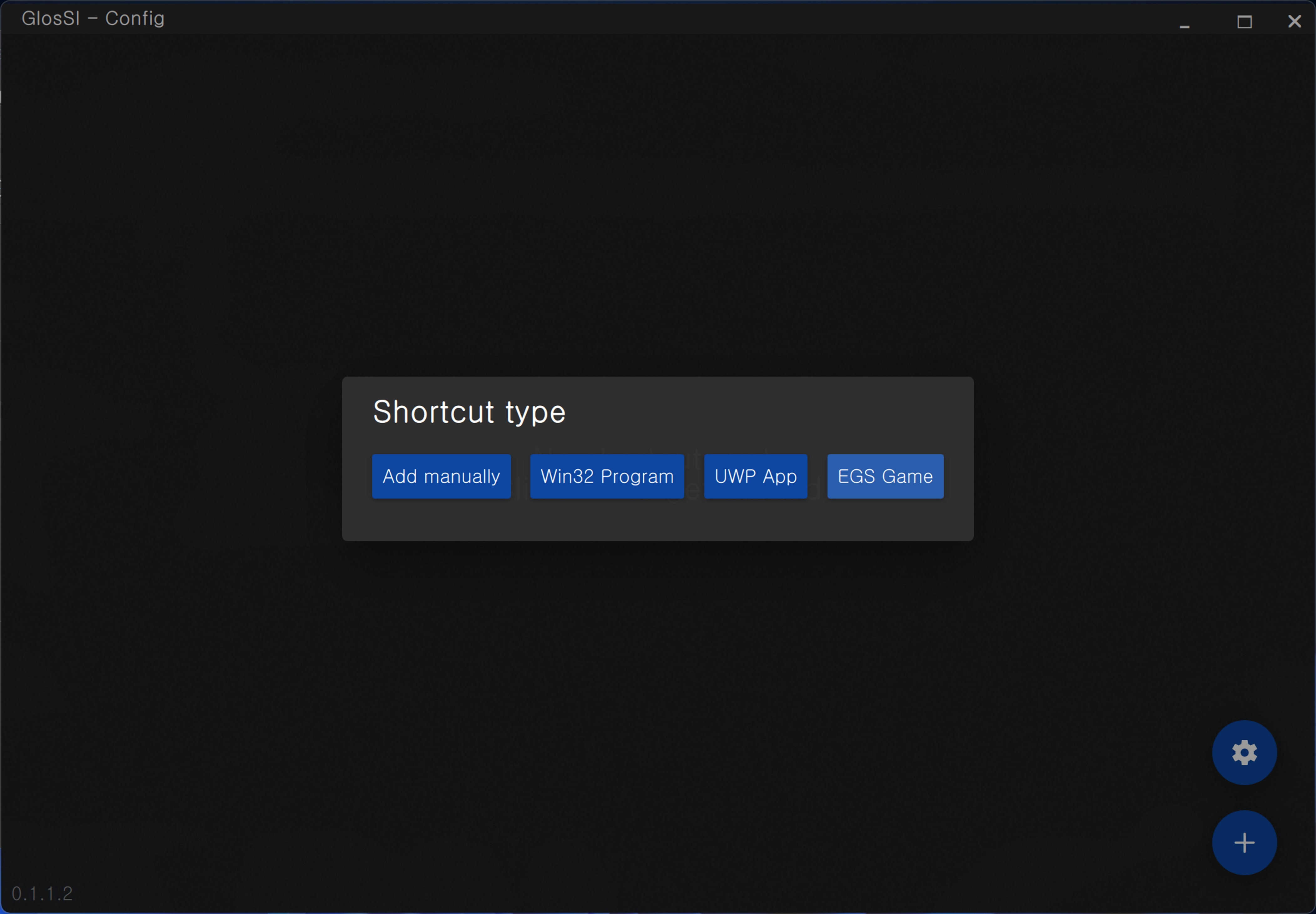 3. GlosSI 프로그램의 초기 화면이다. 프로그램 적용 대상이 될 게임을 추가하기 위해 오른쪽 하단의 "+"를 누른다.