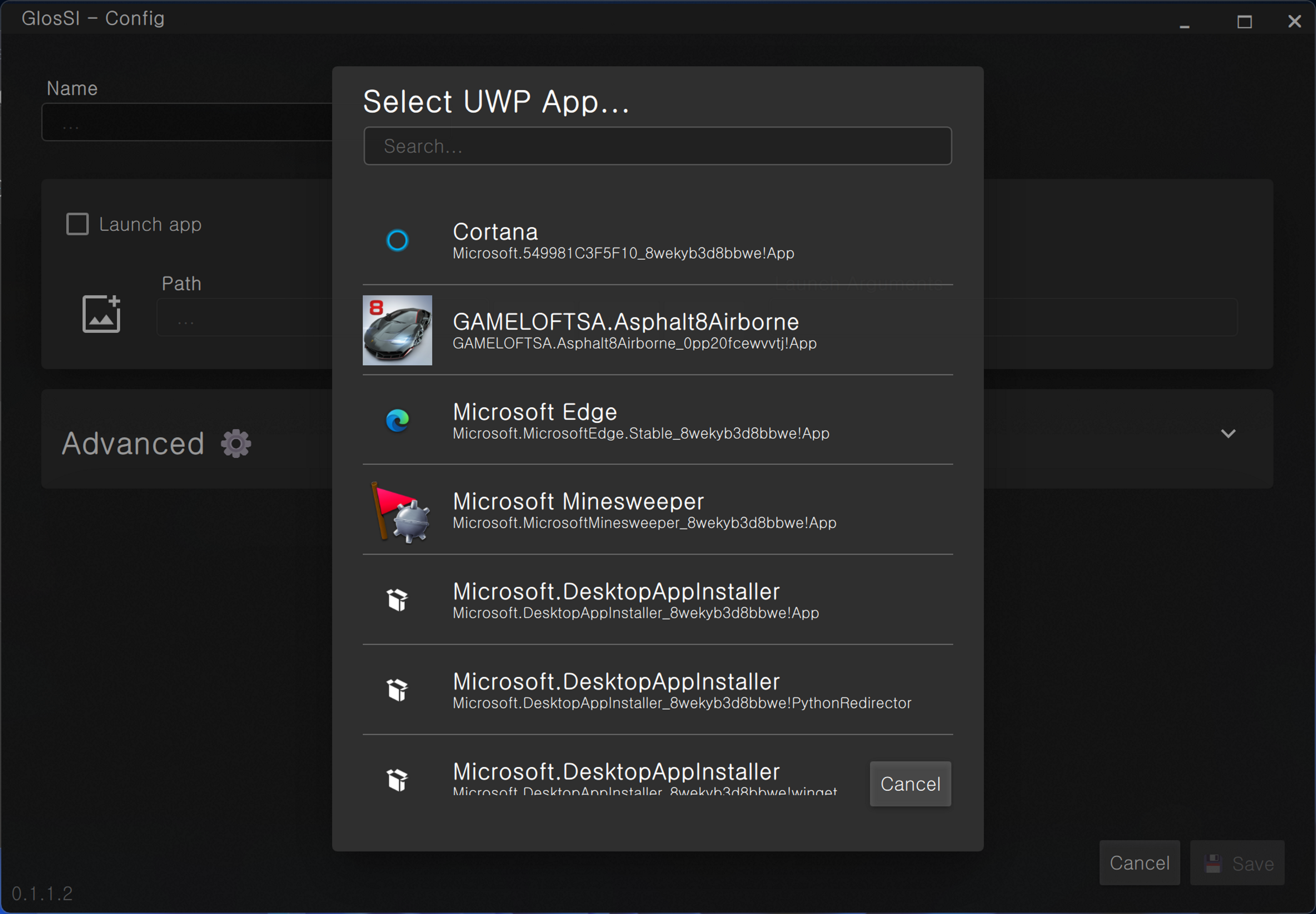 윈도우에 설치된 UWP 앱들의 목록을 자동으로 찾아 보여주므로 추가를 원하는 게임을 선택하기만 하면 된다.