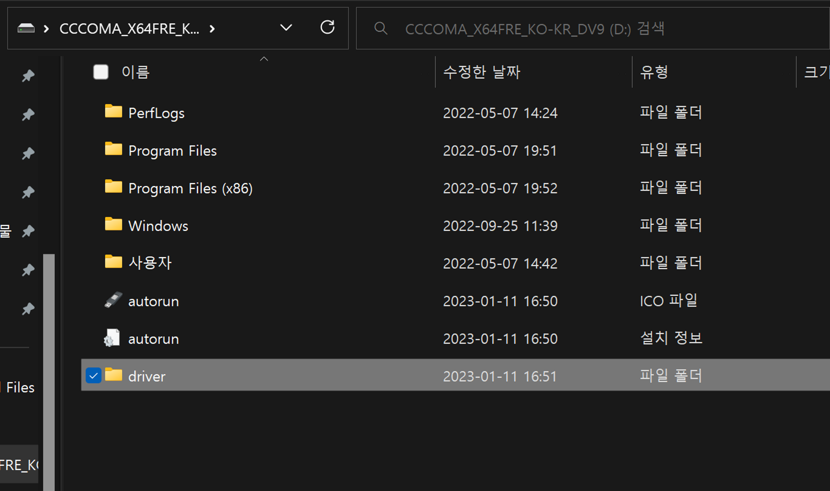 9. 윈도우 환경을 구성한 MicroSD 카드의 최상위에 새 폴더를 만들고 그곳에 드라이버 설치 파일들을 모두 복사해 놓는다.