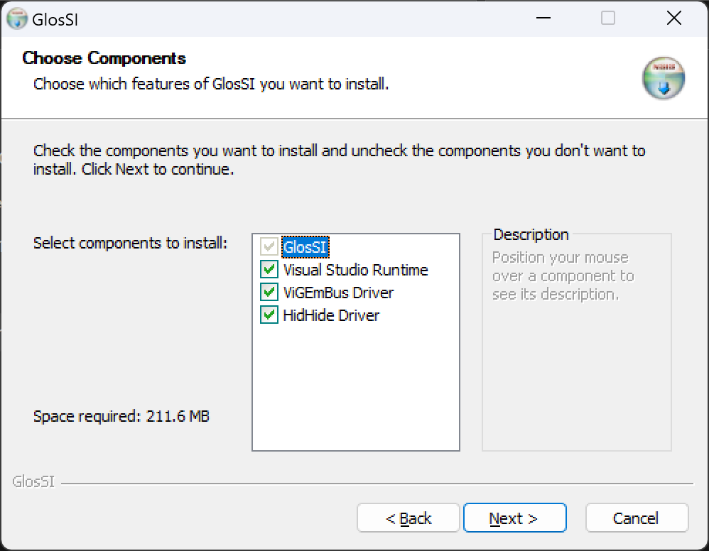 2. 설치 파일을 실행해 GlosSI 설치 과정을 진행한다. 기본 옵션으로 그대로 놔두고 [Next]만 계속 클릭해도 된다.
