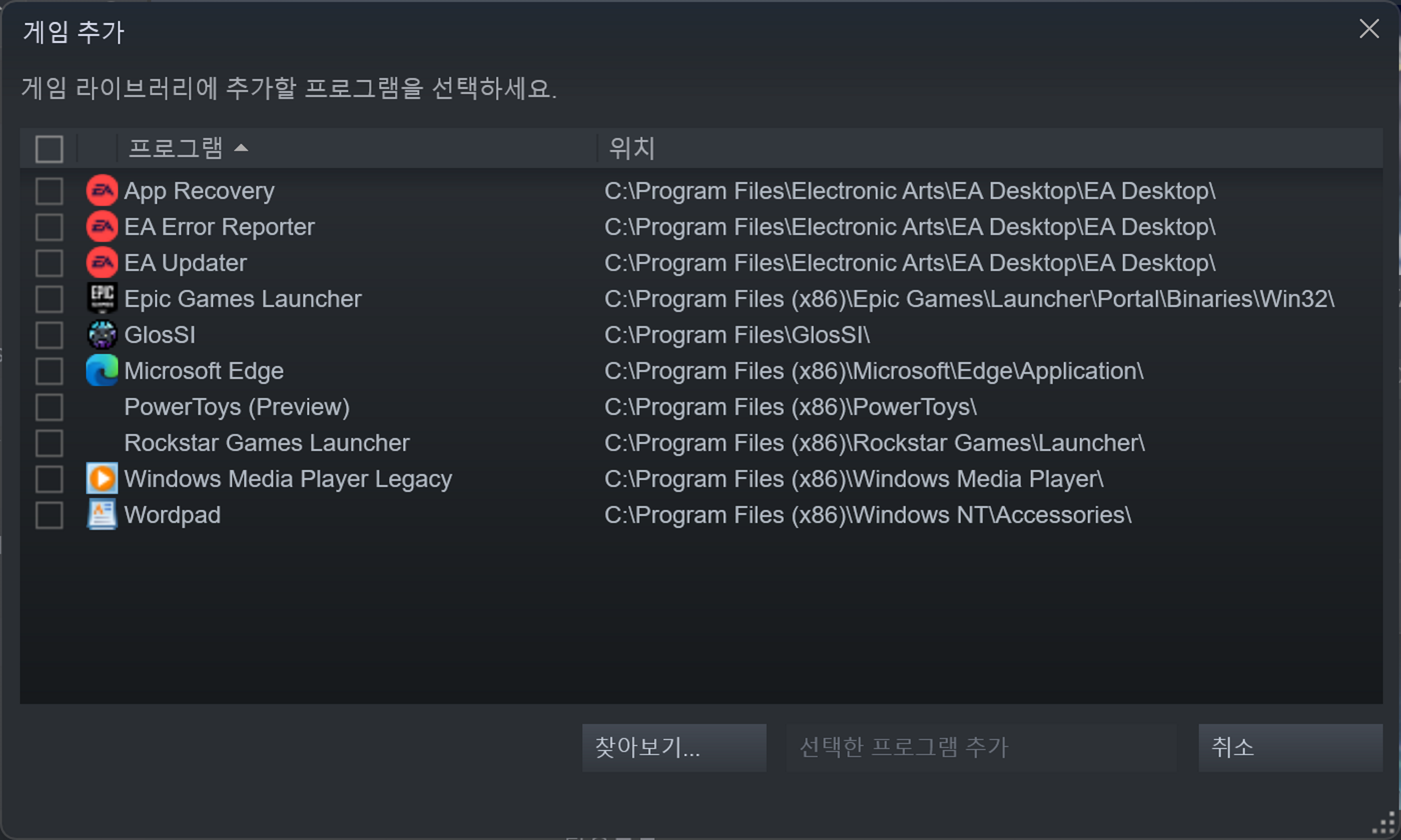 추가를 원하는 게임의 실행 파일이 위치한 경로를 직접 지정해 주어야 한다.
