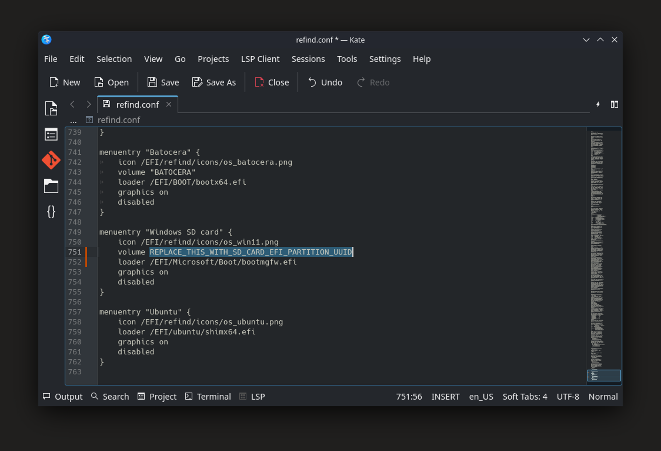 6. 749줄 즈음부터 시작되는 menuentry "Windows SD card" 구문에서,