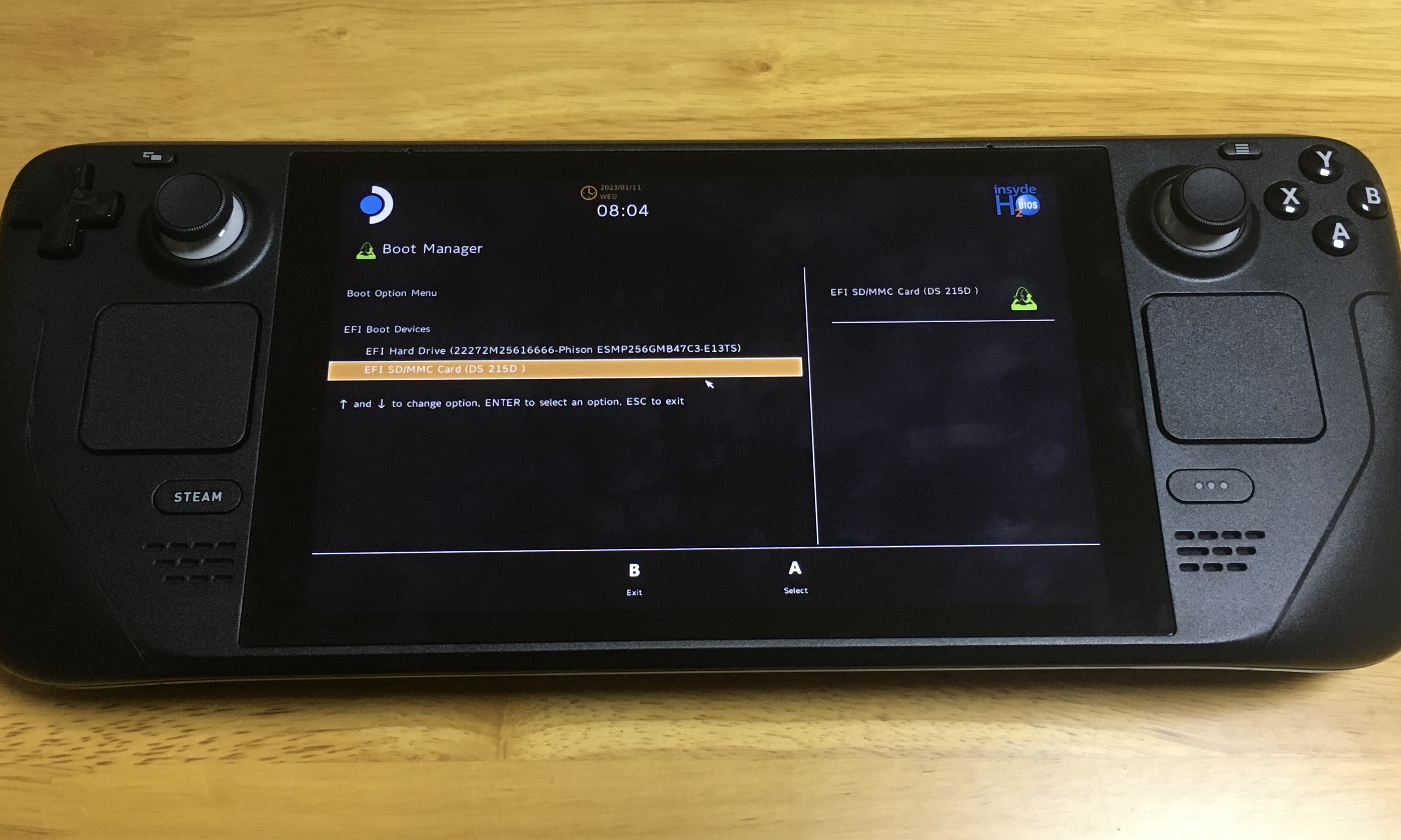 이제 스팀 덱을 켤 때마다 위 사진과 같은 화면을 볼 수 있을 것이다. 여기에서 트랙패드 조작을 통해 부팅할 OS를 선택하면 해당 OS로 바로 부팅된다.