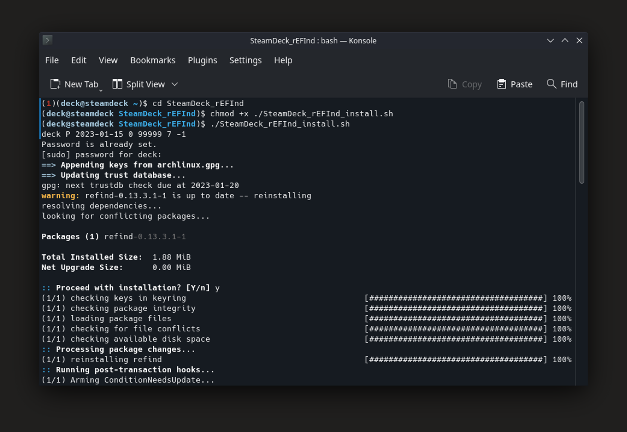 chmod +x ./SteamDeck_rEFInd_install.sh