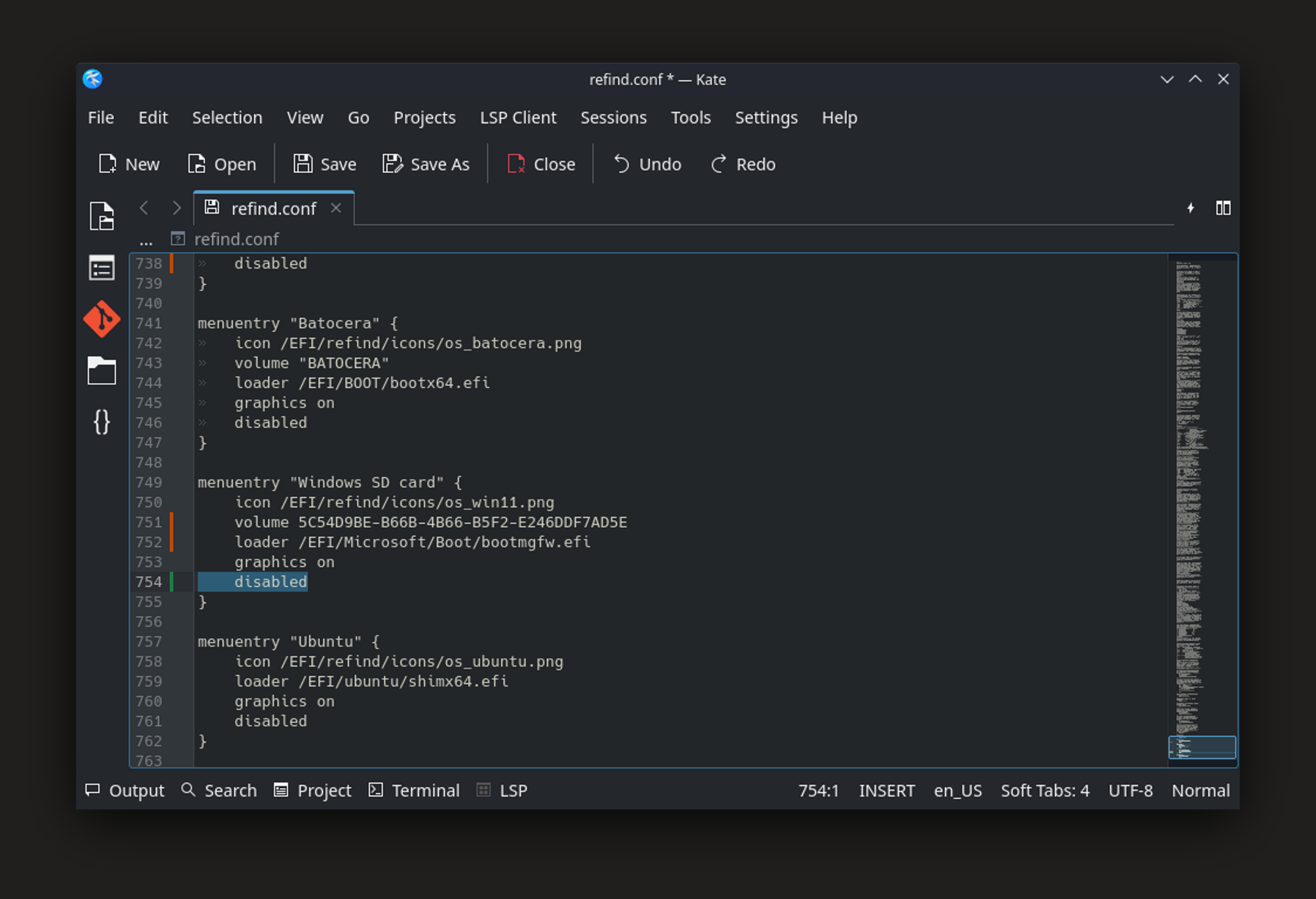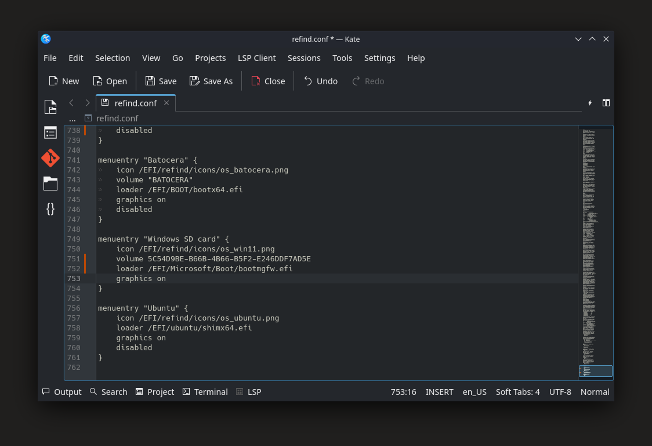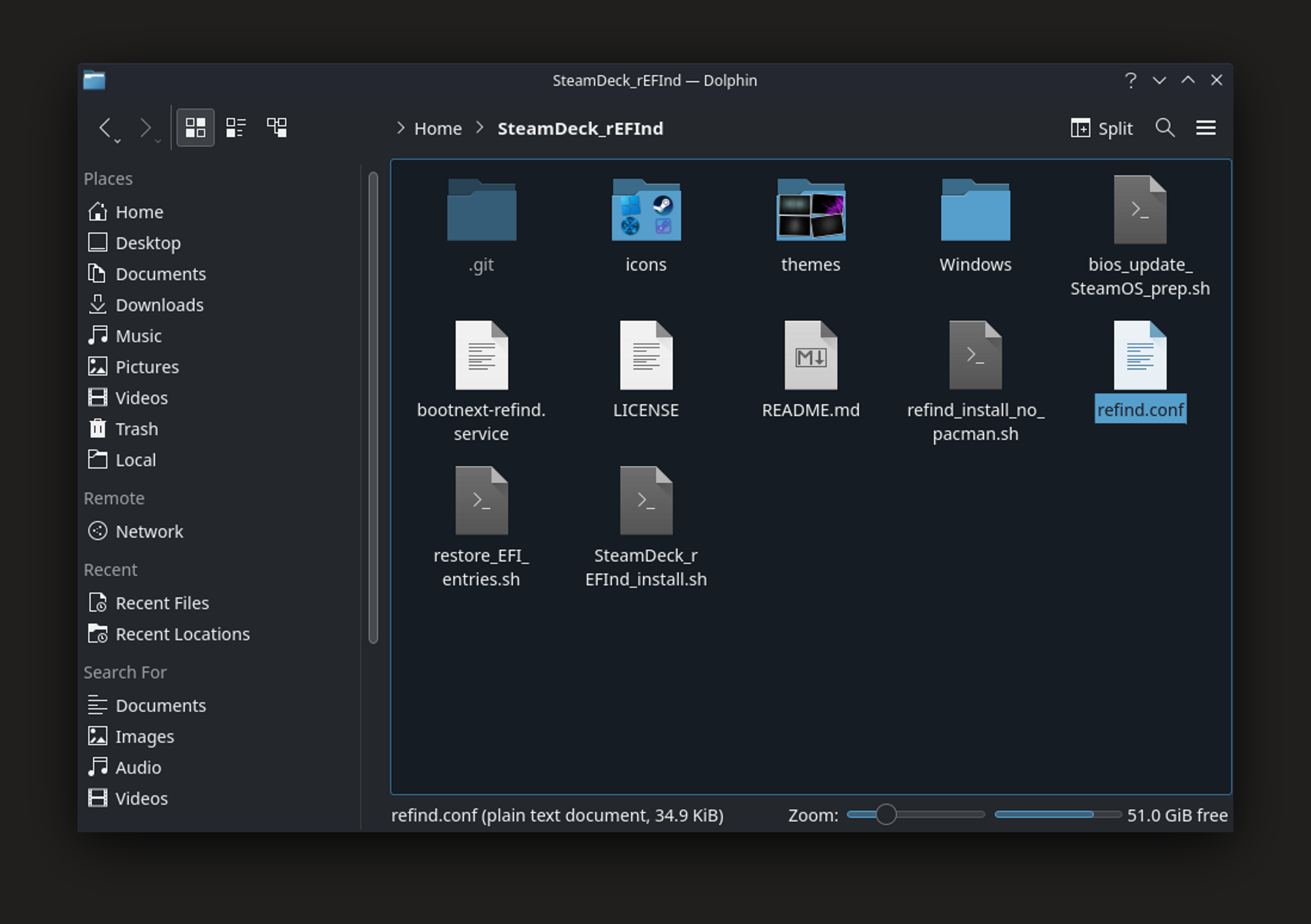 4. Home/SteamDeck_rEFInd 폴더에서 'refind.conf' 파일을 열기