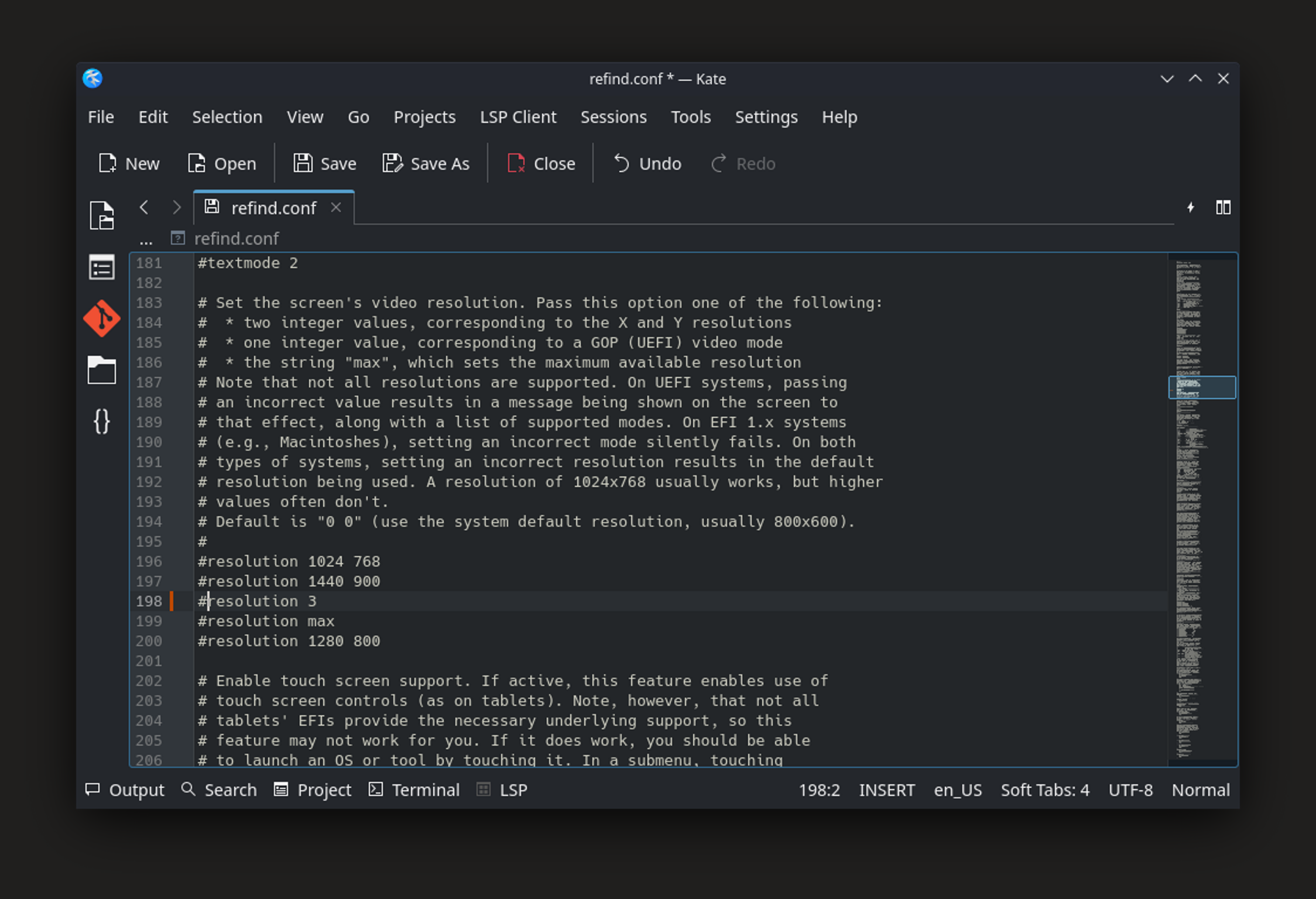 이 방법은 rEFInd 설치 전 'refind.conf' 파일에서 일부 내용을 수정하여 rEFInd에서 세로 화면으로 부팅을 유도하도록 하면 해결되나 이 경우 부팅 OS를 선택하는 화면도 세로로 나오게 되는 만큼 필요에 따라 설정해 주자.