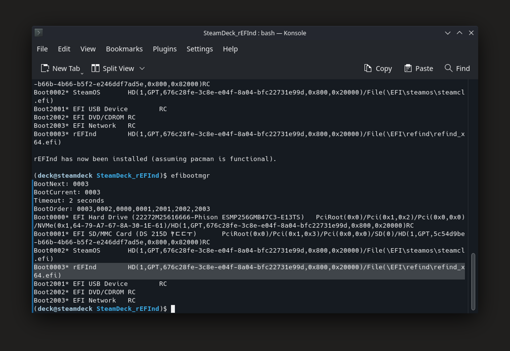'리파인드(rEFInd)'라는 EFI 시스템 유틸리티를 이용하여, 스팀 덱을 켤 때마다 부팅할 OS를 고를 수 있는 화면이 나오는 환경을 구성할 것이다.